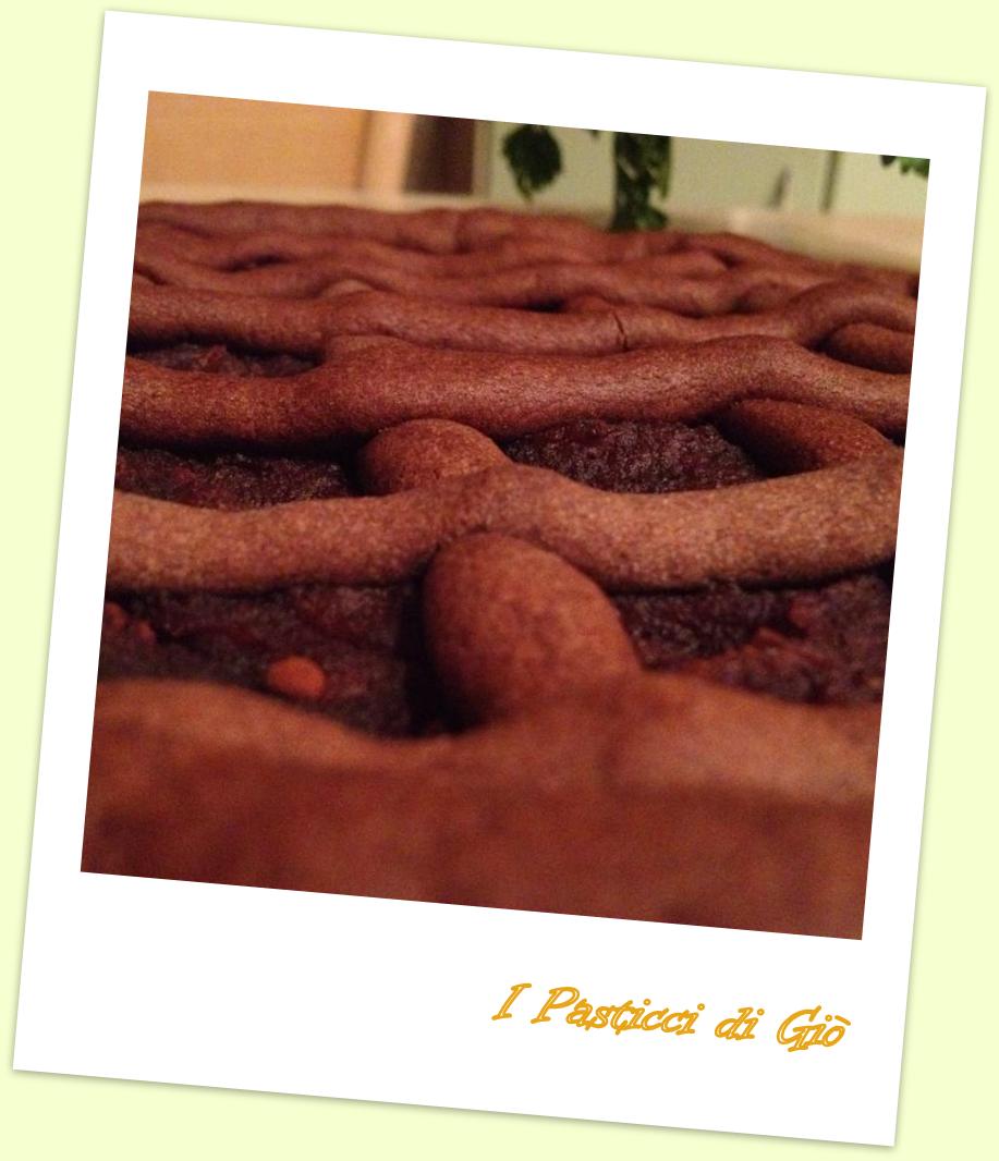 Iniziate lavorando il burro con gli aromi, e lo zucchero utilizzando uno sbattitore elettrico o la planetaria con l'utilizzo della frusta, fino ad ottenere un composto cremoso. Agggiungete in seguito le uova precedentemente sbattute, poco alla volta. Aggiungete per ultimo la farina setacciata assieme al cacao e lavorate brevemente fino ad incorporare il tutto (questo passaggio dovrà essere effettuato con la foglia per quando riguarda la planetaria, oppure utilizzando una spatola a mano). Fate riposare questo composto in frigorifero per almeno 30 minuti. Una volta pronto l'impasto stendete la frolla ad uno spessore di circa 2cm, e dategli la forma desiderata. Imburrate e ricoprite con carta forno una teglia dal diamentro di 26cm e foderatela con la frolla. Ora a parte mescolate la marmellata con 10g di cacao amaro. Versate tutto il composto sopra la frolla e spolverate con il restante cacao. Con la frolla rimasta ora ricavateci delle striscioline e adagiatele sopra. Cuocete a forno ventilato preriscaldato a 180°C per circa 25-30 minuti. Servite una volta raffreddata del tutto. Ottimo è anche l'introduzione all'interno del ripieno della marmellata, di un pò di castagne cotte al forno e sbriciolate, così da dare uno squisito contrasto cremoso croccante.
